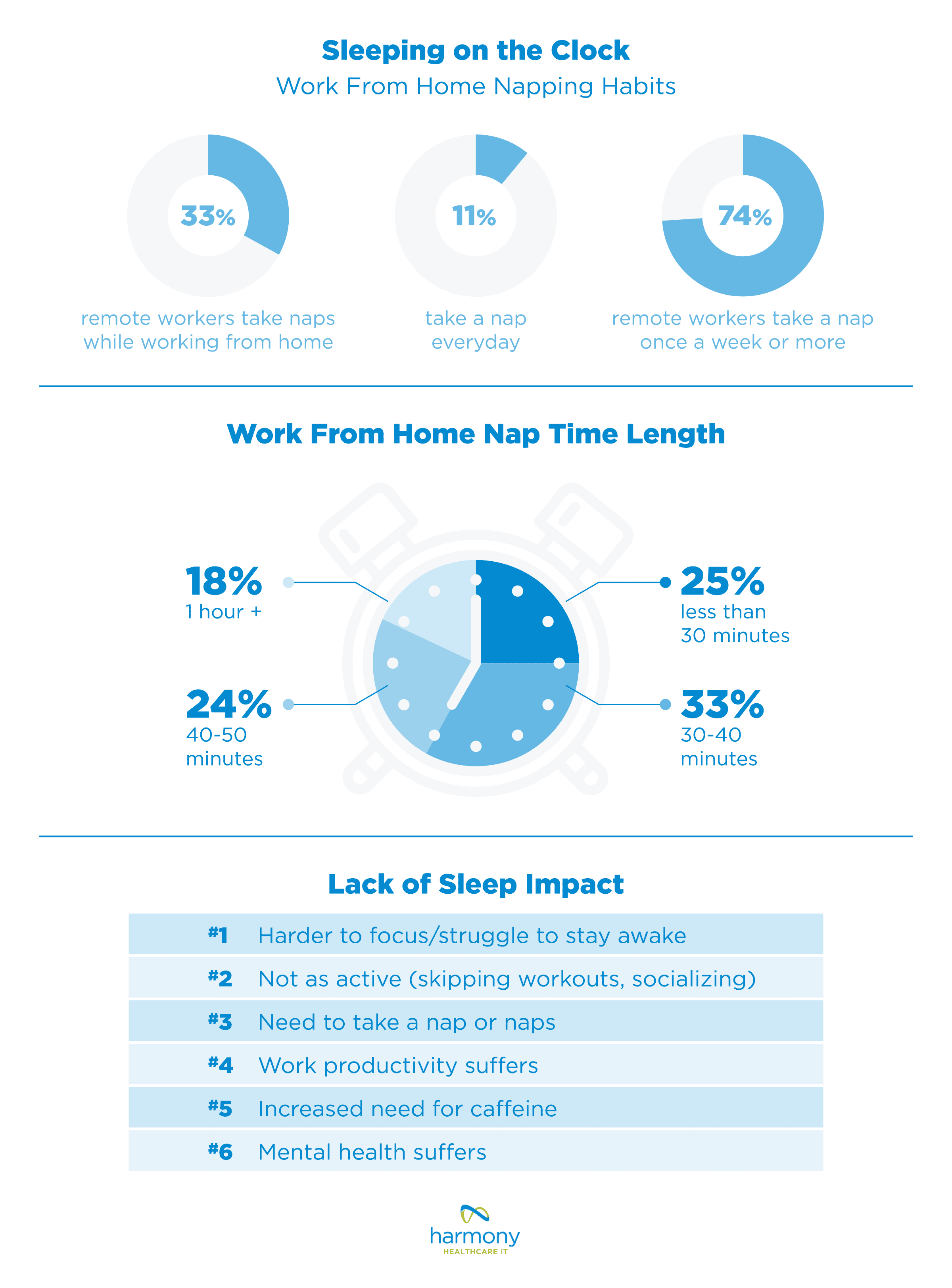 Surprisingly, some people who work remotely or have hybrid schedules are getting a lot of extra shut eye during the day. One out of every three people we surveyed owned up to taking naps while working from home. Of those, 74% said they nap once a week if not more.