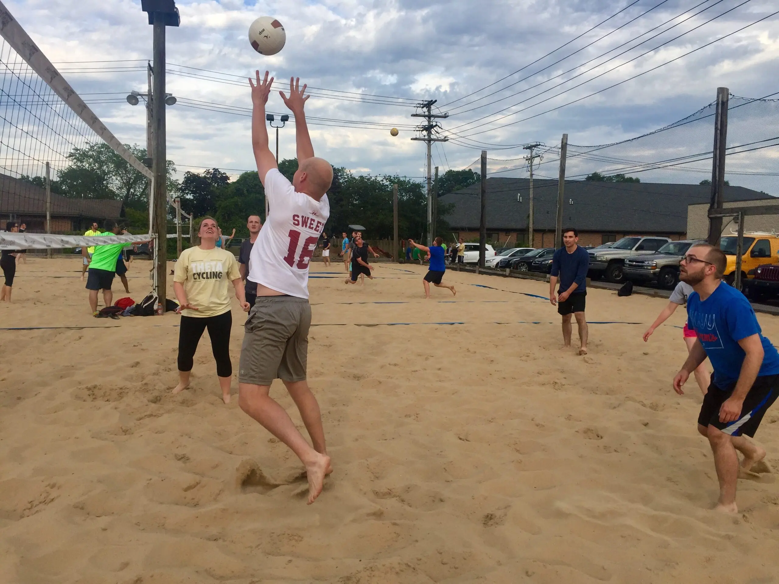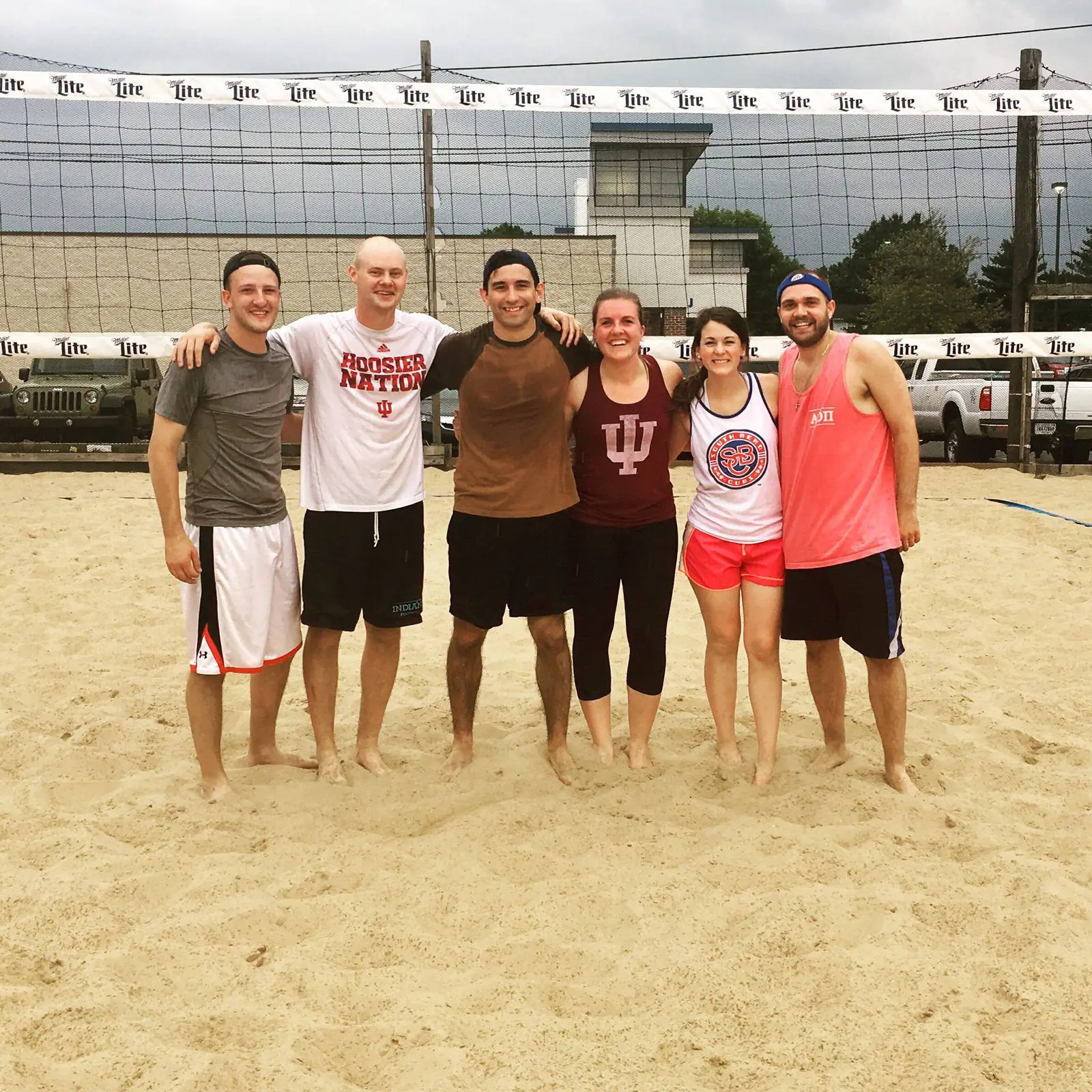 The league play was hosted at Outpost Sports in Mishawaka, Indiana — just a few miles down the road from the Harmony Healthcare IT headquarters in South Bend. With top-of-the-line courts comprised of imported white sands from Lake Michigan, Outpost has offered a unique Midwest meeting place for corporate teams to bond for the past 30 years. Each week, six to eight Harmony HITters signed up, kicked off their shoes and posted at the courts to strategize, scout the competition and play to win.